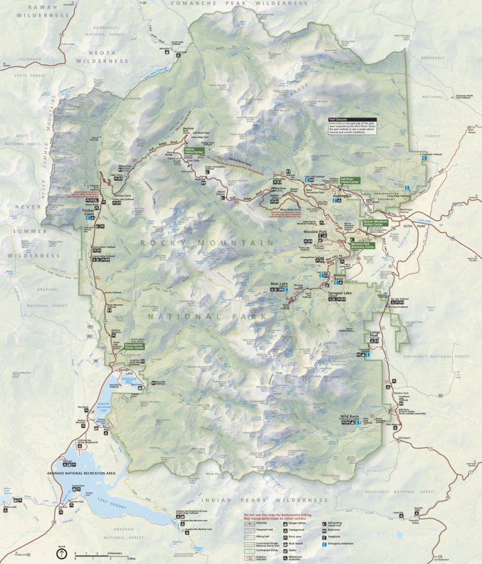 Rocky Mountain Area Map – Rocky Mountain National Park is home to herds of elk and bighorn sheep, but it also has a population of mountain lions and black bears. Although attacks are very rare, the National Park Service . Five grey wolves have been released into Colorado’s Rocky Mountains after a 2020 vote on to release between 10 and 15 wolves into the area by mid-march 2025. The wolves were originally .